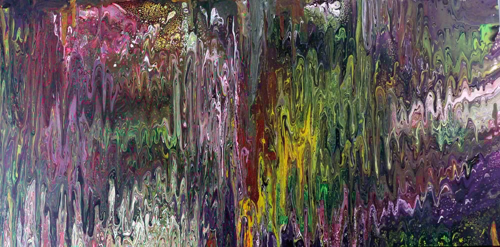 24" x 48" Dirty pour acrylic painting on canvas High gloss finish Lots of cells and color - very unique and eye-catching Wired and ready to hang